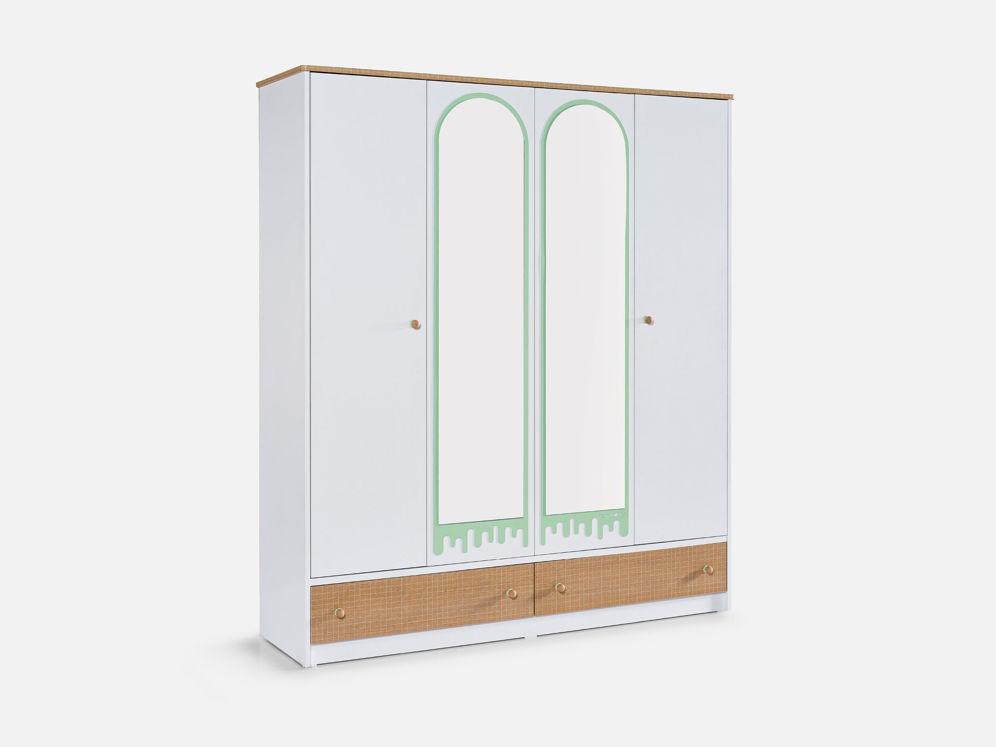 JOLLY Genç Odası 4 Kapaklı Dolap | Lazer Kesim Aynalı, LED Aydınlatmalı Modern Dolap