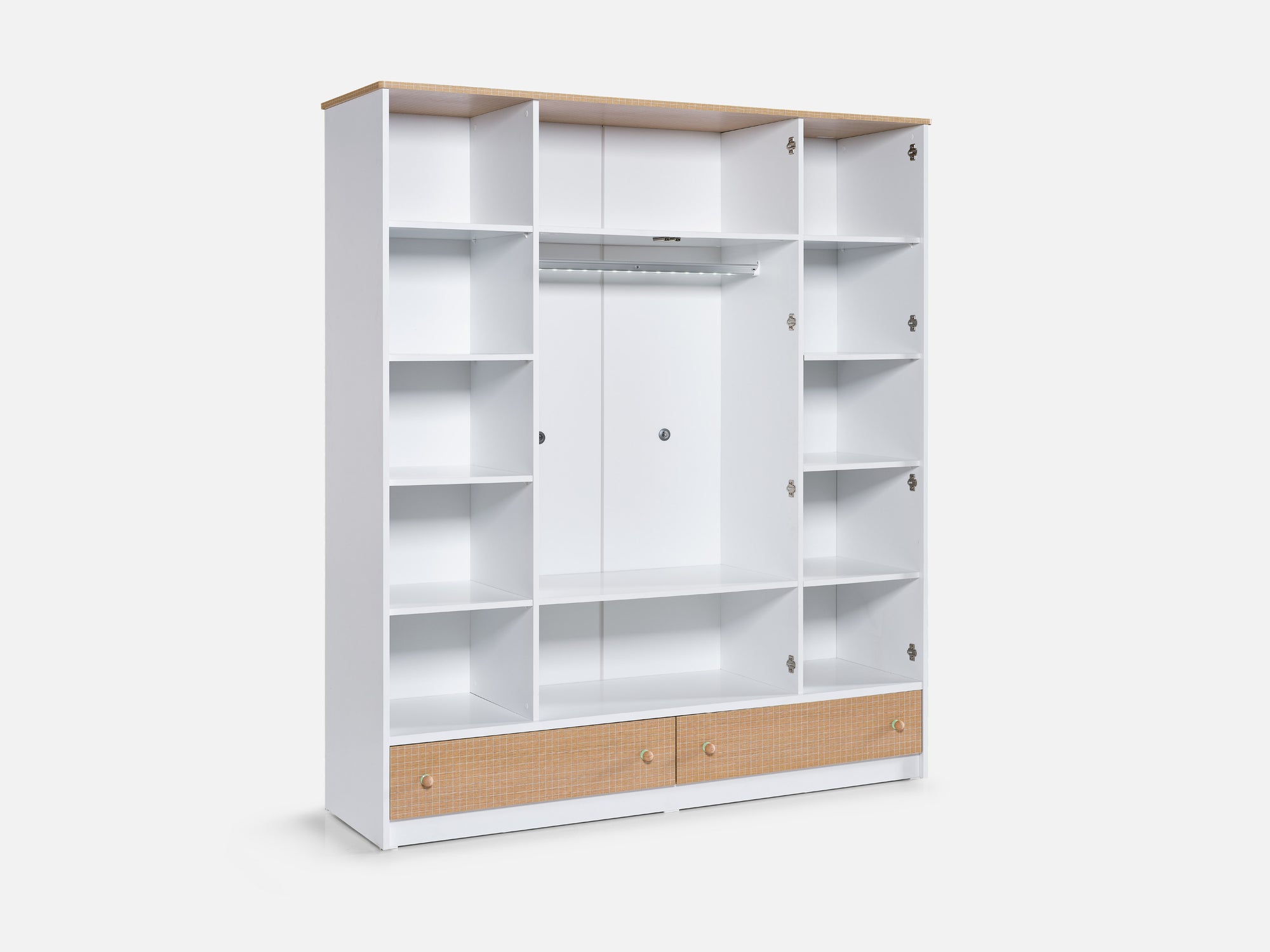 • LED ışıklı askı borusu sayesinde dolap içi her zaman aydınlık ve düzenli kalır.
