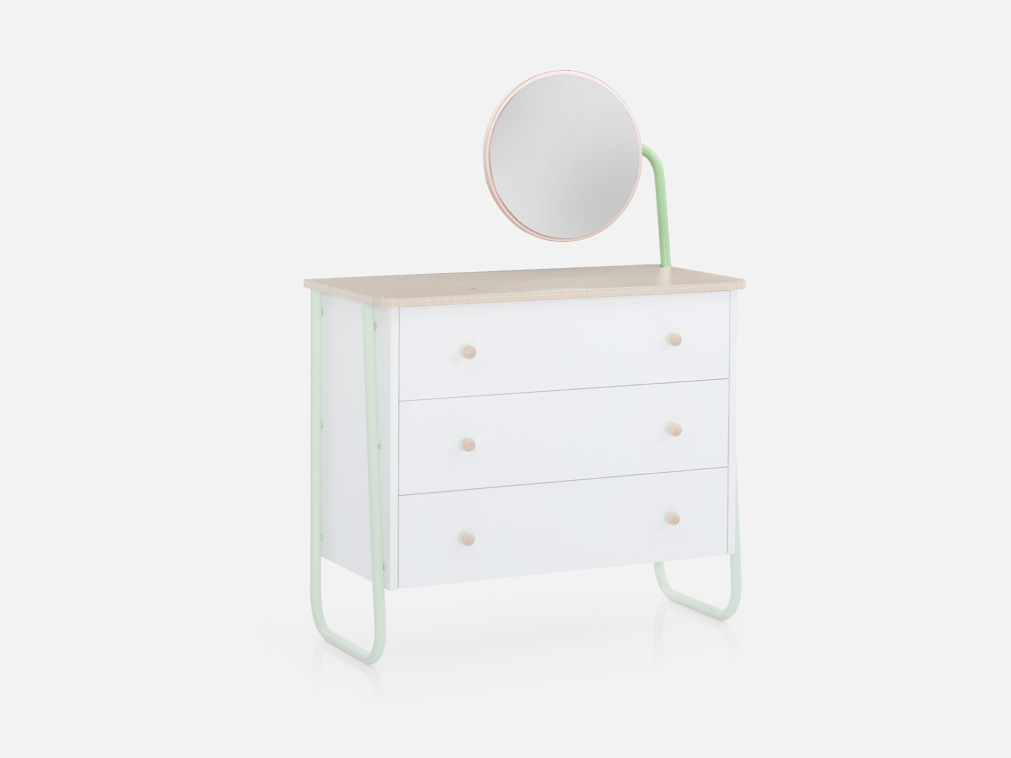 JOLLY Ayna, modern ve şık tasarımıyla genç odası şifonyerinize zarif bir dokunuş katar. Sade yapısı sayesinde odanın pastel ve neşeli atmosferini korurken, kullanışlı bir amaç sunar.
