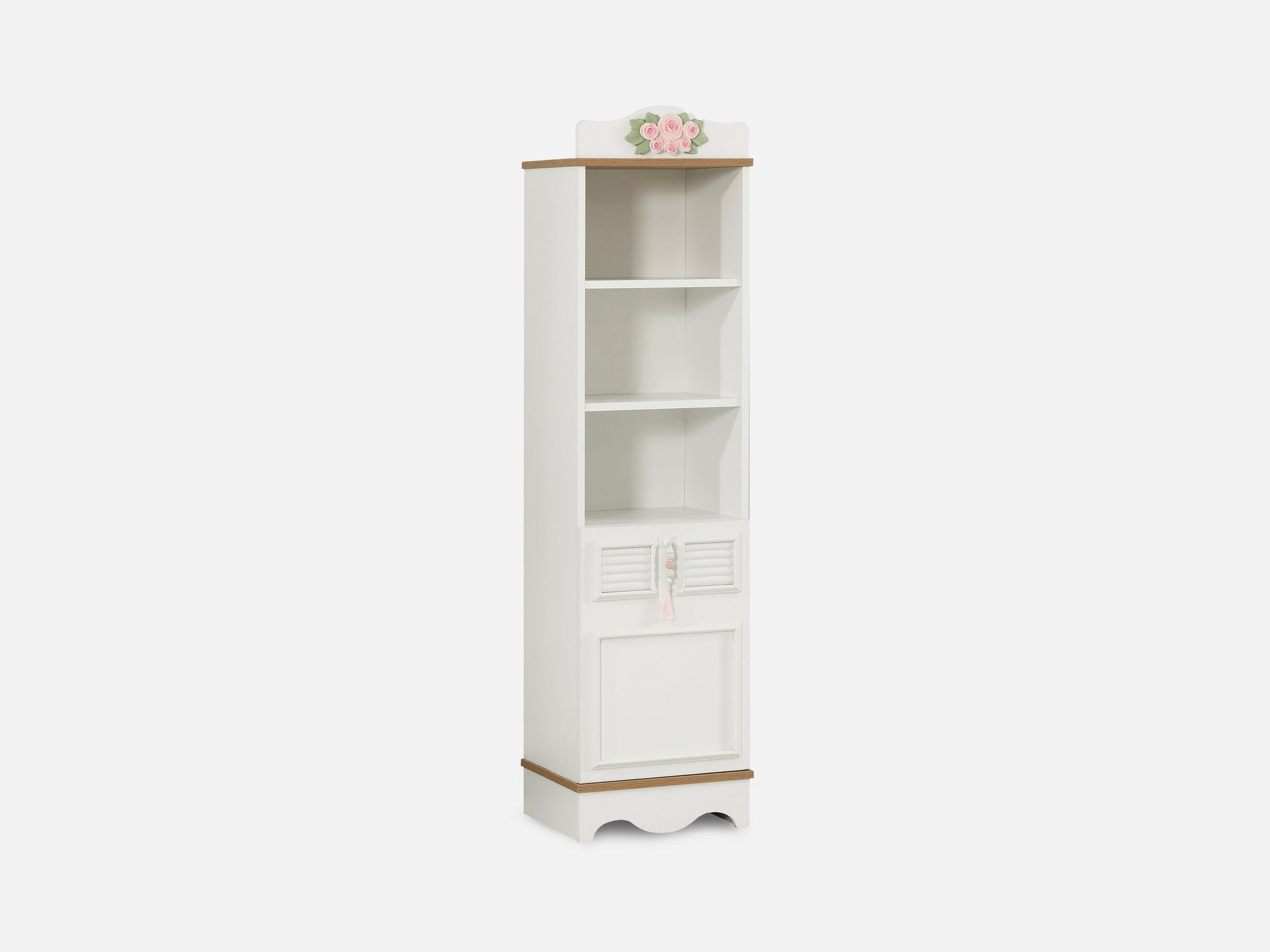 LUNA Kitaplık, Neo-Klasik tasarımın zengin ve sofistike çizgilerini yansıtarak zarafetiyle dikkat çeker. Romantik Country estetiğiyle genç odalarına dingin ve asil bir hava katar.