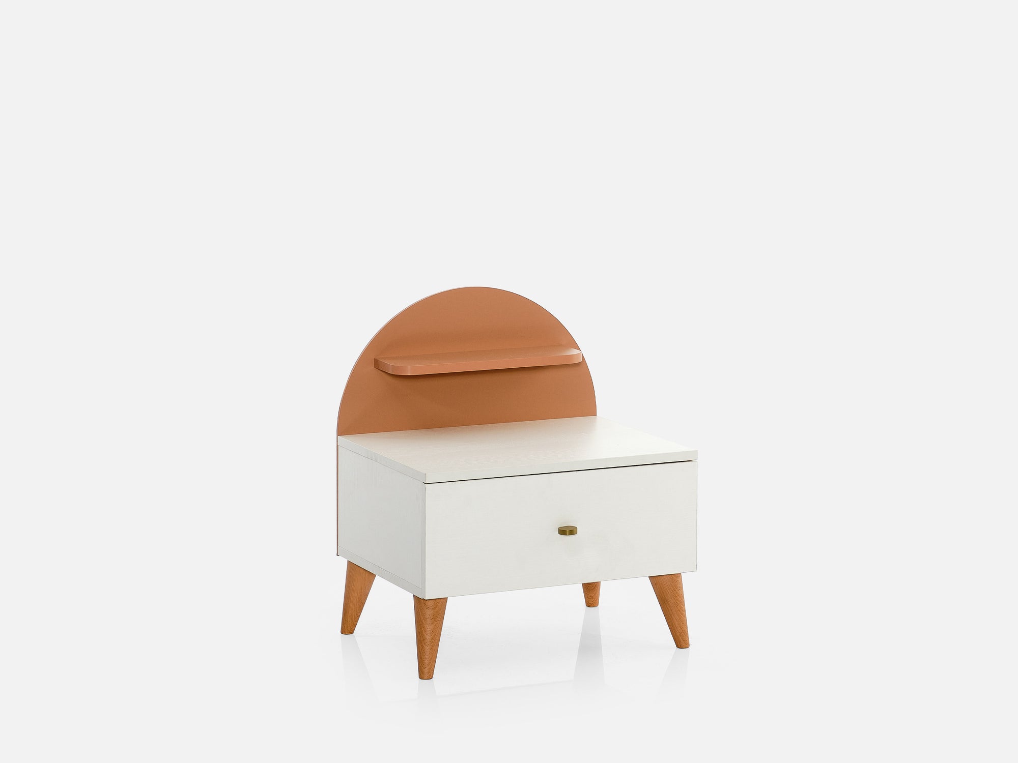 • Ahşap görünümlü ABS ayakları ve metal kulpu, modern ve zarif bir kontrast oluşturarak komodinin şık görünümünü tamamlar.