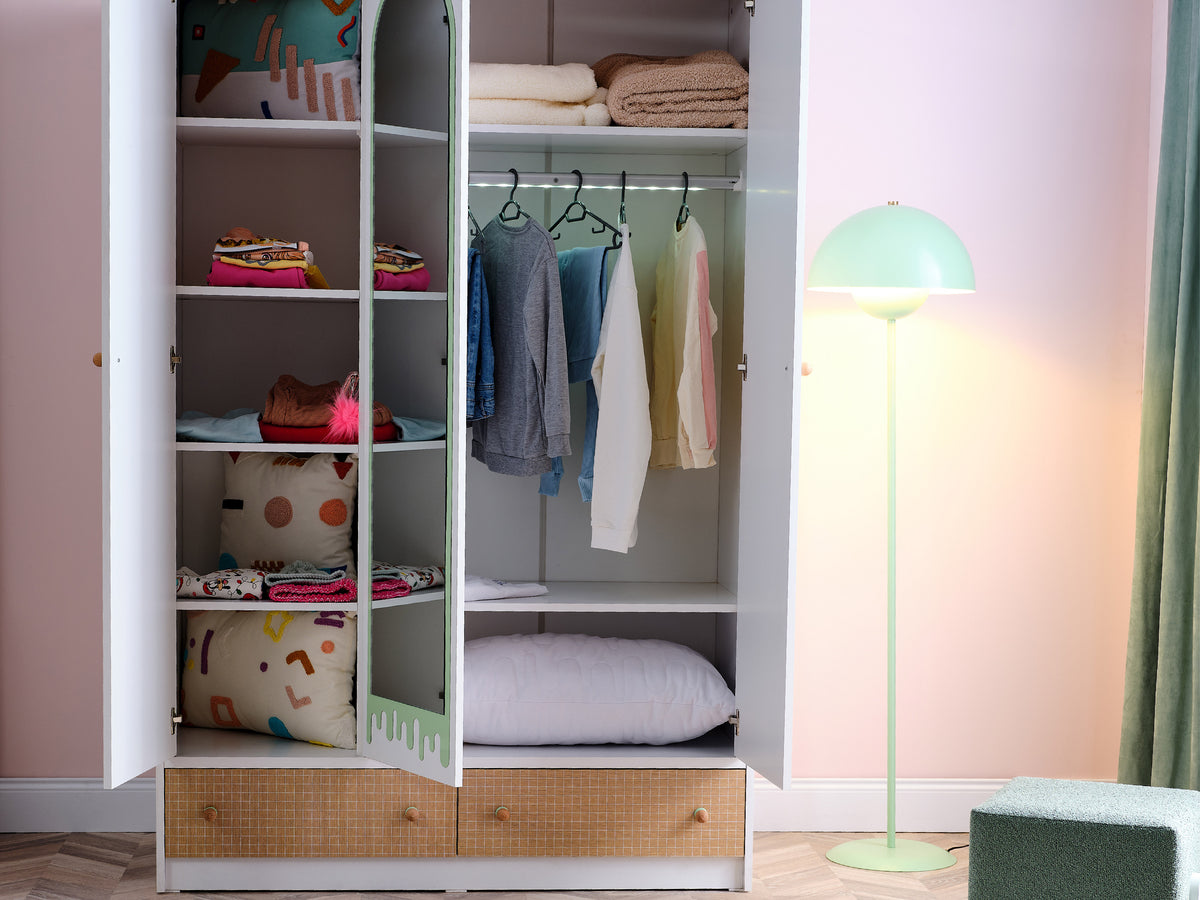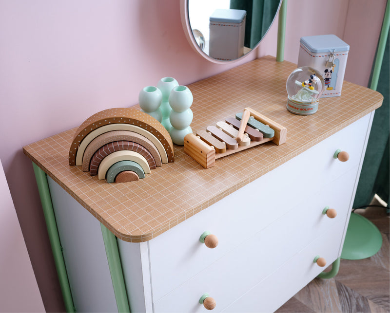 Yumuşak pembe, mint yeşili ve açık gri tonlarının zarif uyumu, JOLLY’nin yaşam alanında canlı ama sade bir denge oluşturmasını sağlıyor. Bu renk paleti, hem sabah güne pozitif başlamayı hem de gün sonunda huzurla dinlenmeyi kolaylaştırıyor.