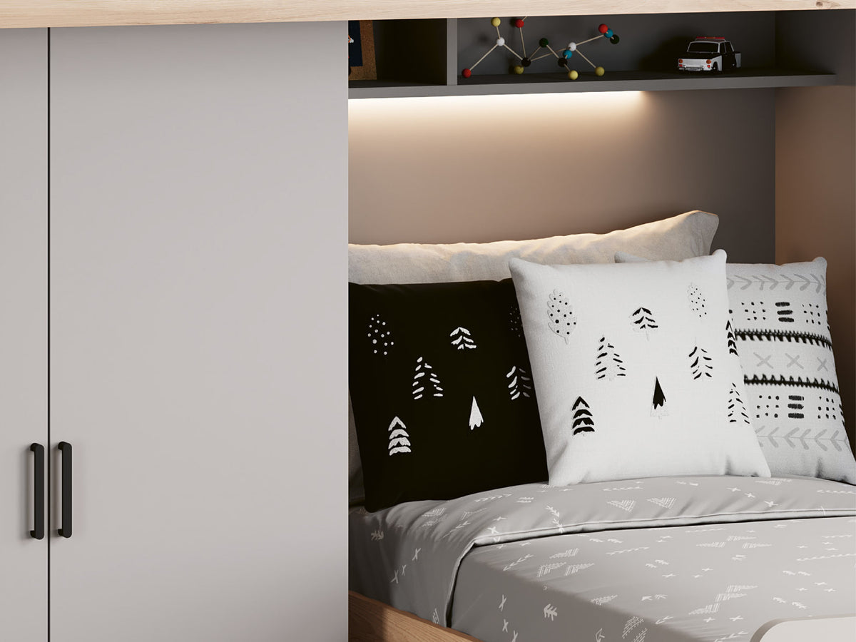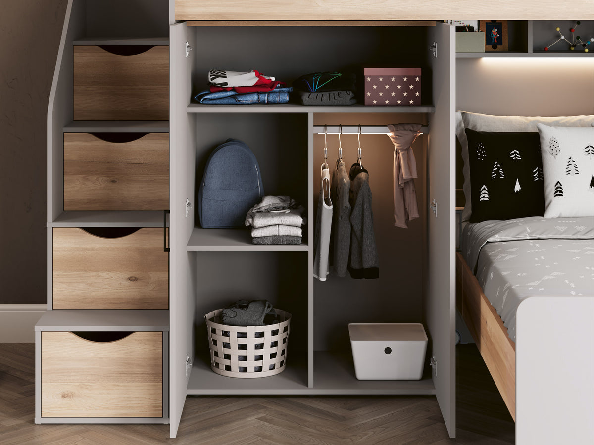 LAGOM Compact Ranza, Lagom felsefesini pratiğe dönüştürür: “Ne az, ne fazla.” Minimal alan kullanımıyla maksimum işlev sunar. Çocuk Odası için küçük odalarda bile düzenli ve ferah bir yaşam alanı sağlar.