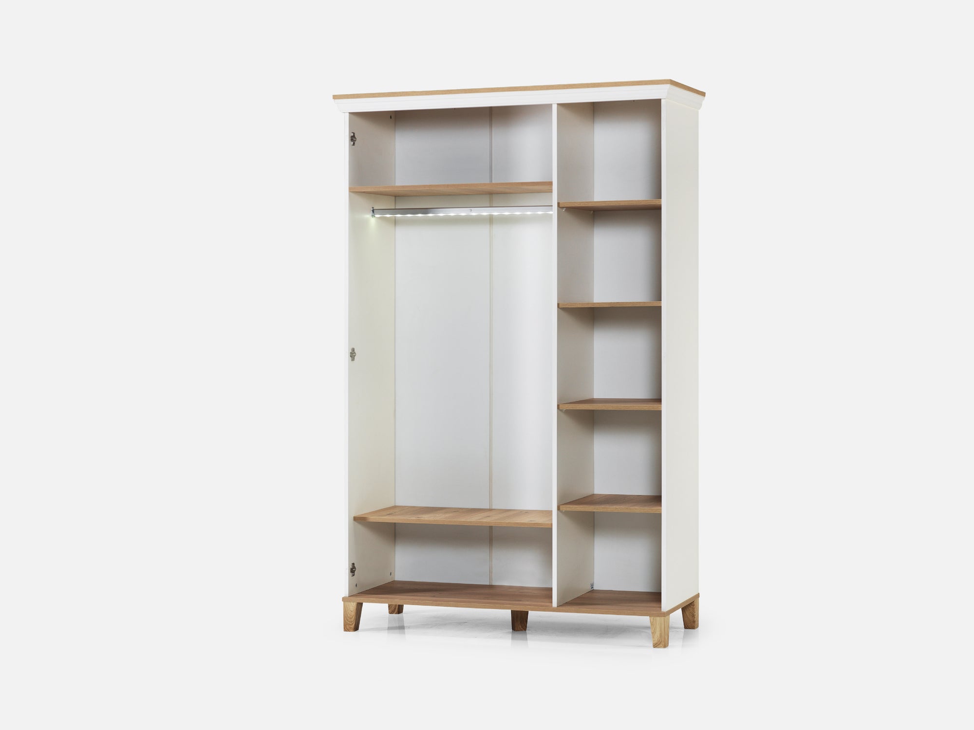 LED’li askı borusuyla dolap içi aydınlatılarak kullanım konforu ve pratikliği artırılır.