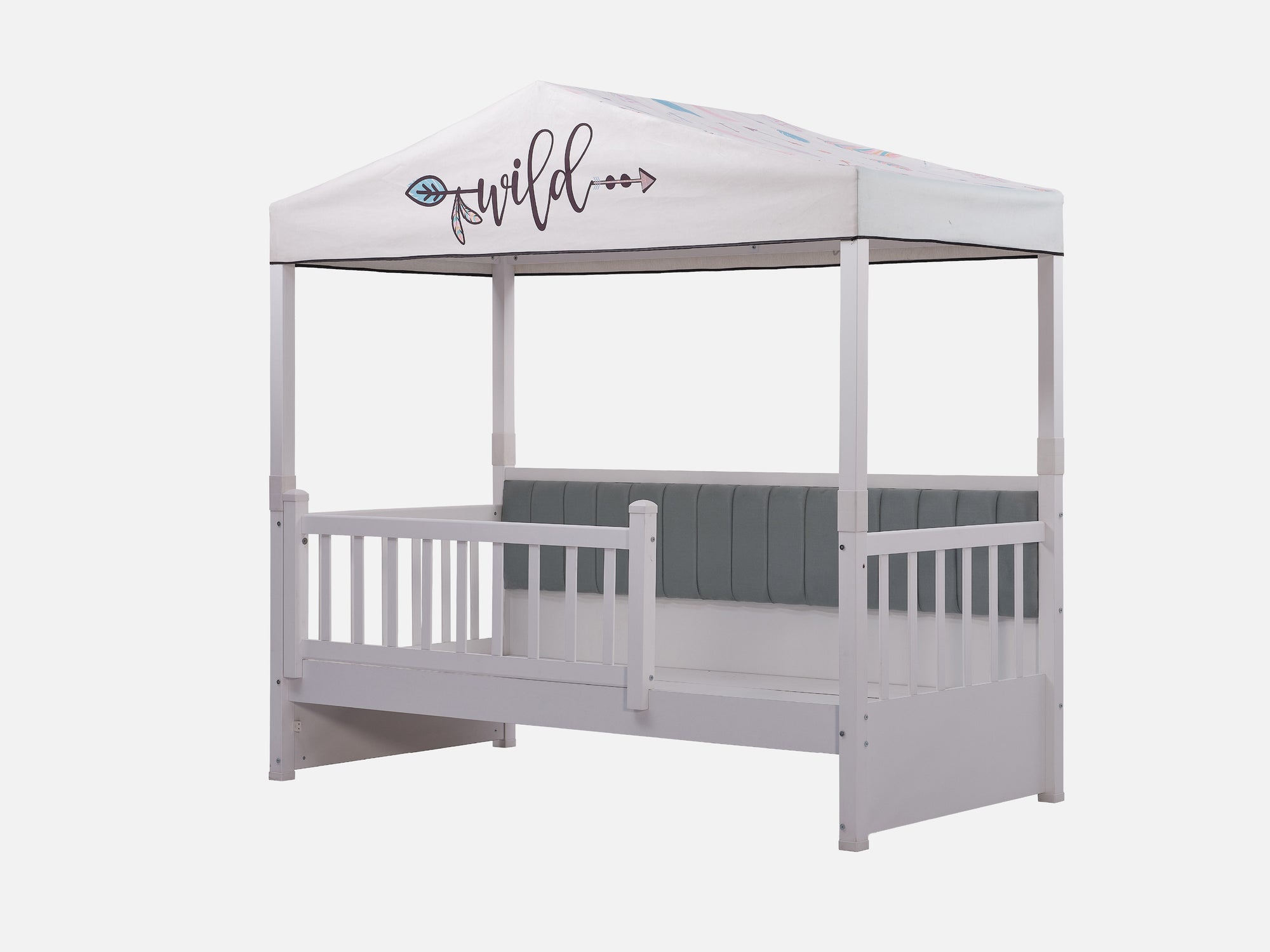 SOHO Montessori Çatısı, SOHO karyolaya modern ve oyuncu bir mimari dokunuş katarak çocukların hayal gücünü harekete geçirir. Basit bir uyku alanını, kişisel bir sığınağa ve eğlenceli bir oyun evine dönüştürür.