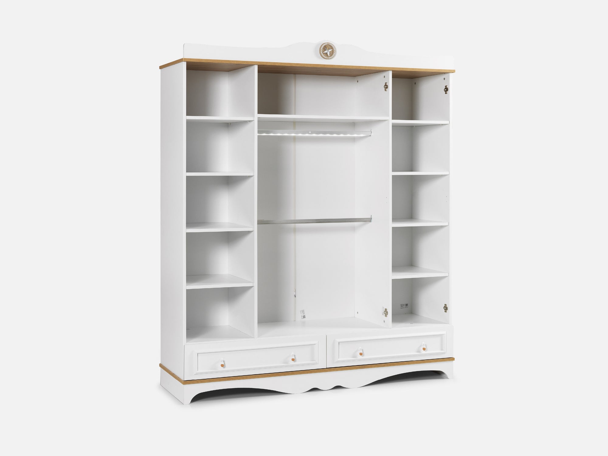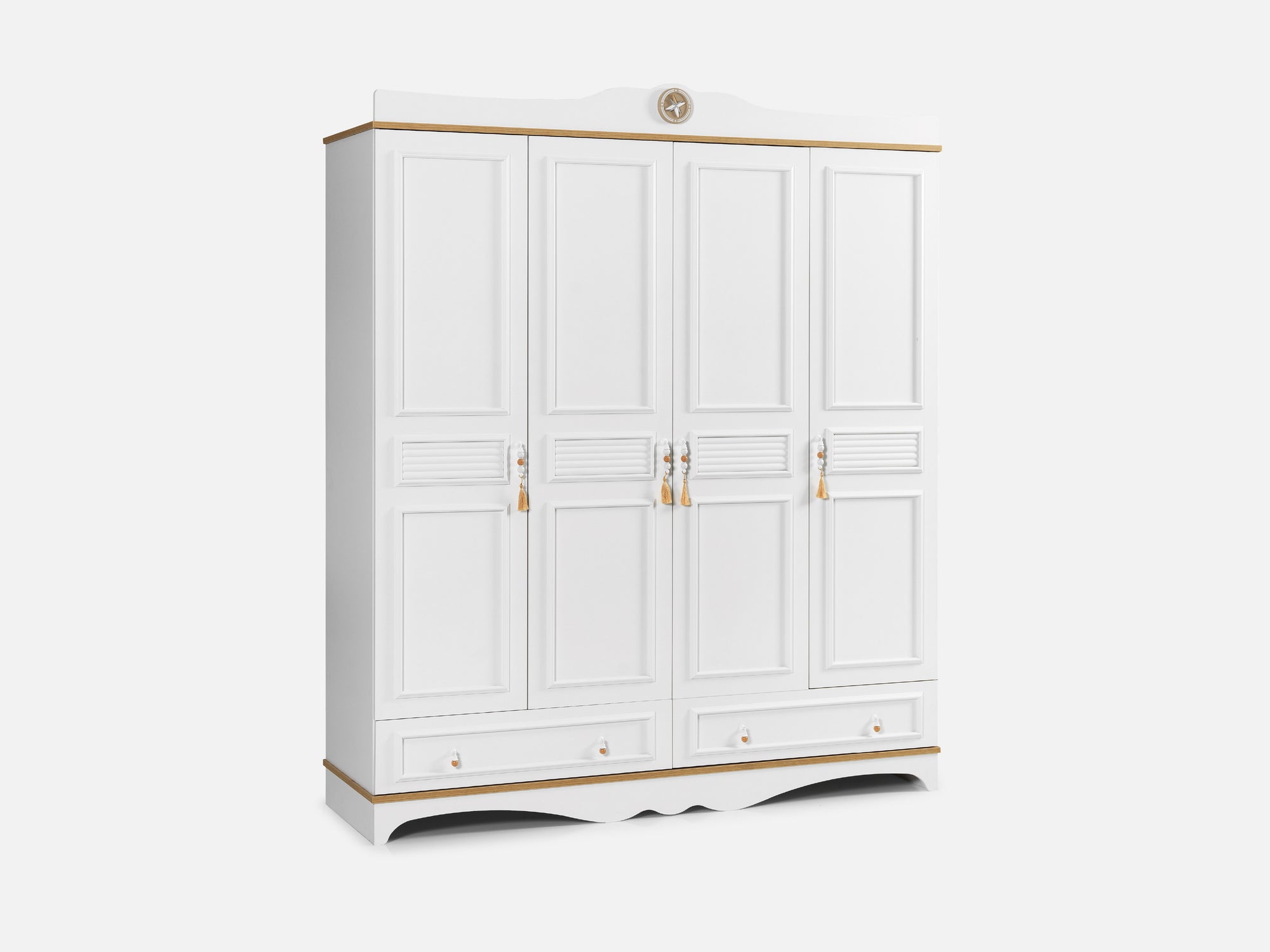CNC kesimli taç ve baza yapısı ile Polyester süslemeler, dolaba klasik bir dokunuş ve romantik bir zarafet katarak asil bir duruş sergiler.